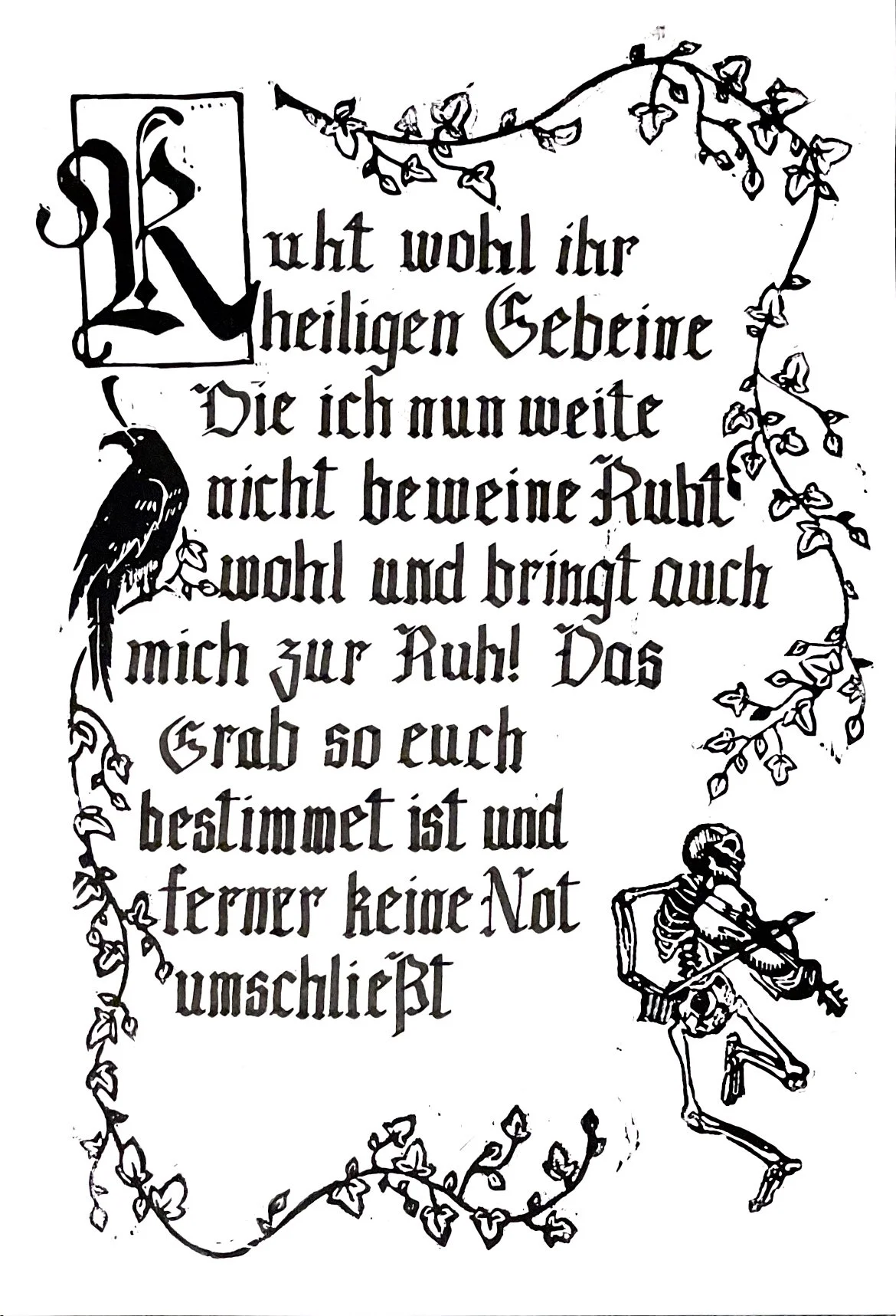 ‘Ruht Wohl’. Black Letter and Lino cut piece based off the lyrics to the final choral movement of Bach’s St John Passion